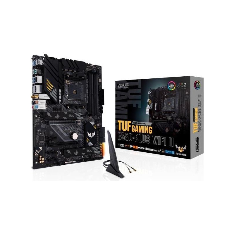 AMD B550 (Ryzen AM4) ATX gaming motherboard with PCIe 4.0, dual M.2, 10 DrMOS power stages, Wi-Fi 6, 2.5 Gb Ethernet, HDMI, DisplayPort, SATA 6 Gbps, USB 3.2 Gen 2 Type-A and Type-C, Thunderbolt™ 3 header, and Aura Sync RGB lighting support