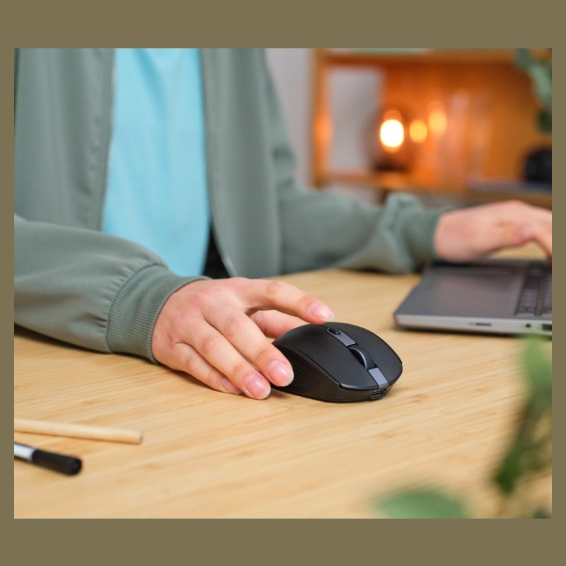 Everything you want in a mouse, the Ozaa Compact has. Its compact size allows it to fit right into your hand; the two side buttons and optical sensor with up to 3200 DPI offer more convenient working; and it’s even made with 60% recycled plastics for more sustainable working!