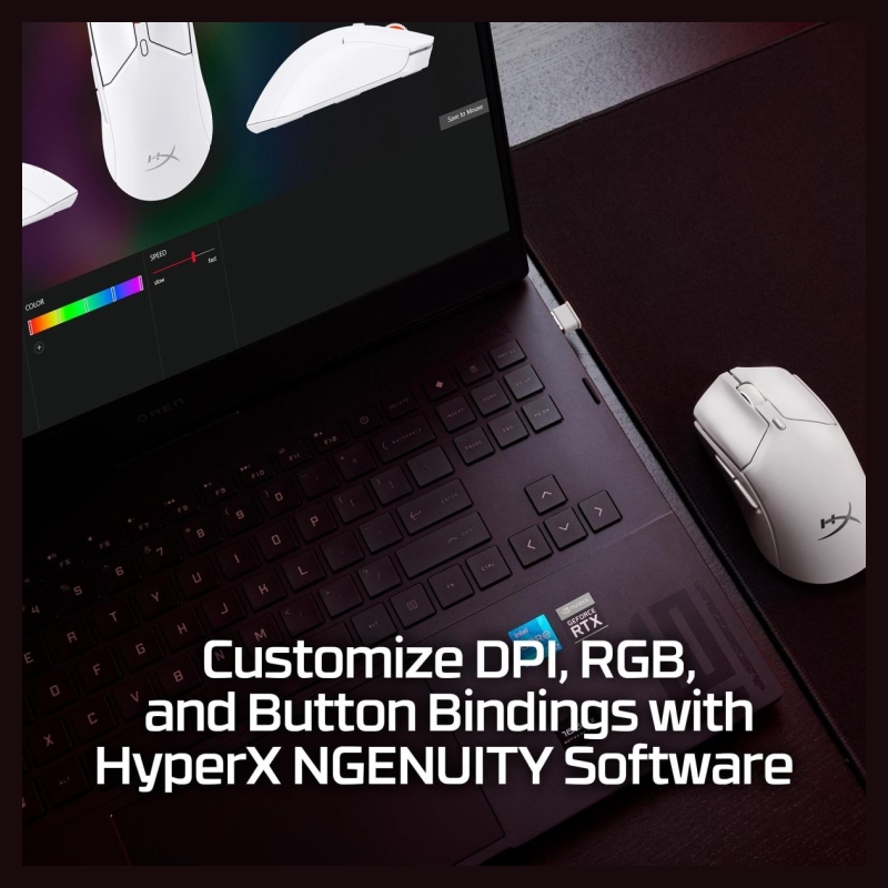 • Get the most out of every mouse movement. HyperX NGENUITY Software can set macros and binds for the 6 programmable buttons, customize DPI levels, and set RGB lighting.