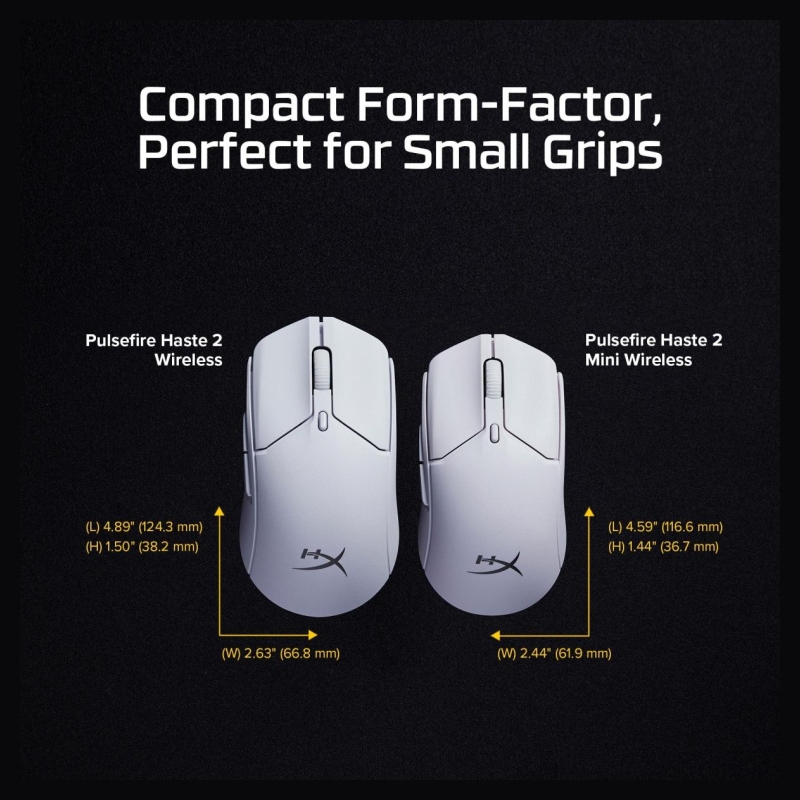 • All the goodness of the Pulsefire Haste 2 Wireless, 1/6th less space! Featuring the same HyperX high-performance custom components, built for gamers with smaller hands, or who prefer smaller mice.