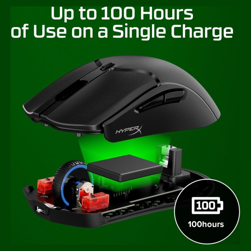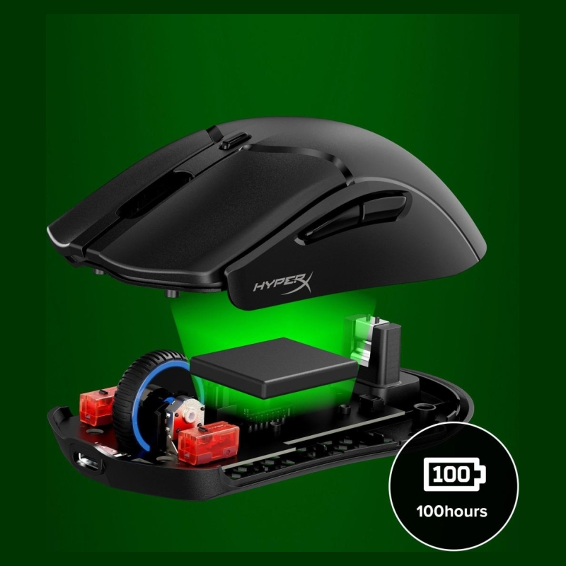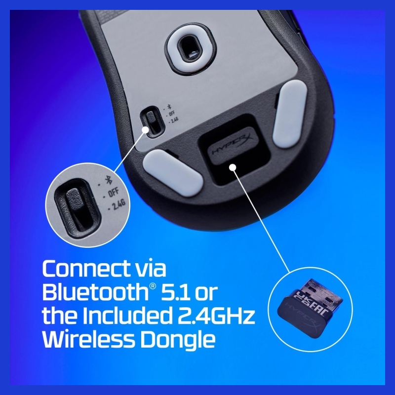 The HyperX Pulsefire Haste 2 Mini Wireless is a precise mouse for gamers who want an ultra-light mouse with wireless freedom but want all that in a compact form factor that weighs less than 60[1] grams. This mighty miniature mouse is 16% smaller than the Pulsefire Haste 2 Wireless but contains the same HyperX suite of high-performance custom components. It features dual mode wireless connectivity, allowing you to switch between 2.4GHz wireless and Bluetooth connections, and a USB-C to USB-A cable so you can charge while using the mouse in wired mode. The immaculate HyperX 26K Sensor delivers native DPI detection of up to 26,000 with a tracking speed of up to 650 IPS. Our custom HyperX Switches provide tactile, audible feedback on each satisfying click, and are rated for a lifespan of up to 100 million clicks. You’ll also enjoy superior physical control of your mouse with smooth, low-friction skates, and the included grip tape. Get the most out of every mouse movement with HyperX NGENUITY Software which lets you create macros for the 6 programmable buttons, customize your DPI settings, and personalize the RGB lighting[2].