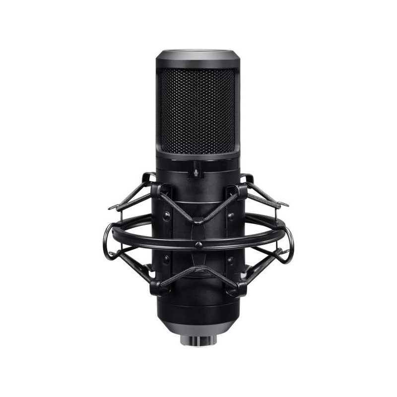 Trust GXT 270 Emita II+. Type: Podcast microphone, Voice coil type: Condenser. Connectivity technology: Wired, Device interface: USB. Product colour: Black, Housing material: Metal, Cable length: 2.5 m. Power source: USB. Width: 42 mm, Depth: 162 mm, Height: 42 mm