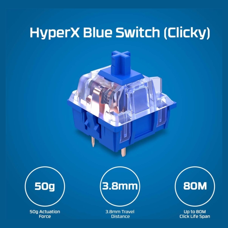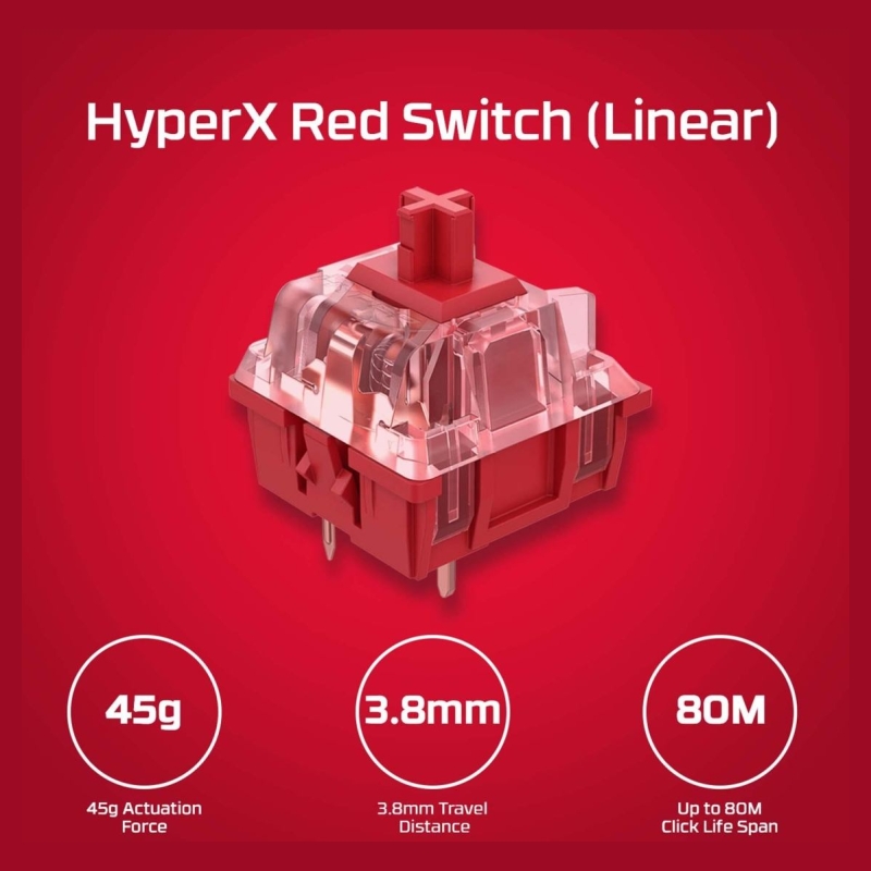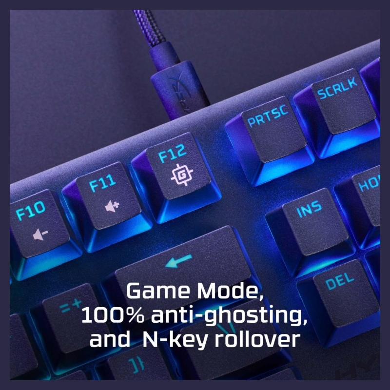The HyperX Alloy Origins Core PBT is an ultra-compact, sturdy tenkeyless keyboard featuring custom HyperX mechanical switches designed to give gamers the best blend of style, performance, and reliability. These variant ups durability by adding pre-installed PBT keycaps with side-printing. HyperX’s mechanical key switches are built with exposed LEDs so more of the light output is visible, providing more brilliant, stunning lighting. They’re also tuned with an actuation force and travel distance that is elegantly balanced for responsiveness and accuracy. Alloy Origins Core is built with a full aluminum body, so it stays rigid and stable, and also features keyboard feet for three different tilt levels. Its compact TKL design creates space for mouse movement in desktop setups where space is at a premium, and it also features a detachable USB-C cable for portability. Customize your lighting, craft macros, and adjust Game Mode with powerful, easy-to-use HyperX NGENUITY Software.