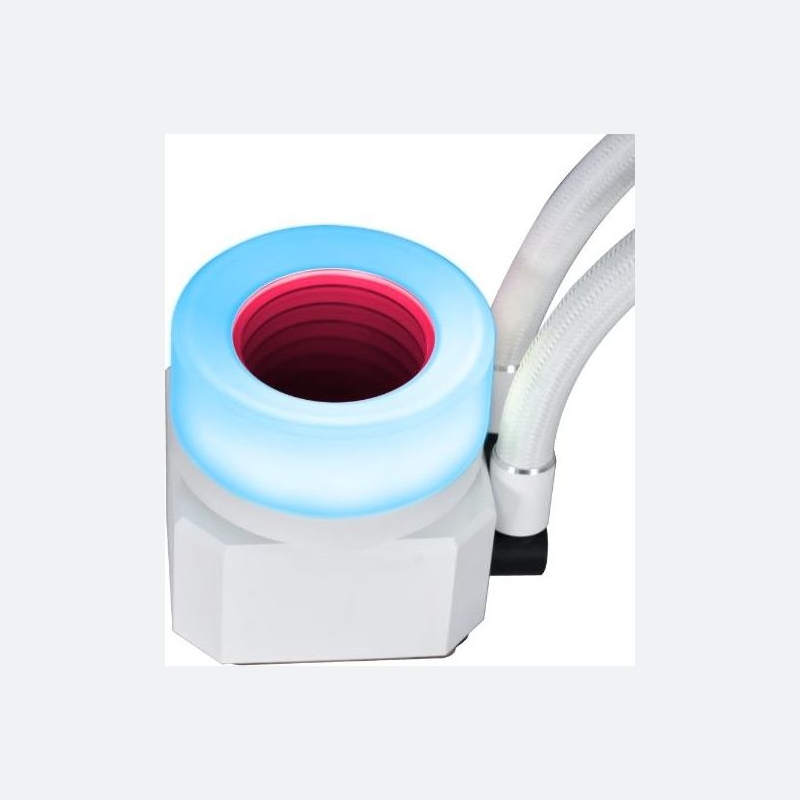 The Galahad II Trinity series’ pump cap has three interchangeable designs, each with a unique look and two rings of colors that can be individually controlled with different lighting effects.