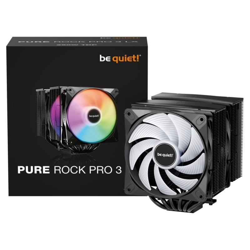 Boost your system with the impressively high cooling performance of Pure Rock Pro 3 LX and spectacularly illuminated Light Wings LX fans. Underneath its striking heatsink with a black cover for a sleek, premium look lies a powerhouse of cooling technology. Thanks to a nickel-plated base, the heat is distributed evenly among all 6 heat pipes, and Pure Rock Pro 3 LX is compatible with liquid metal thermal grease.