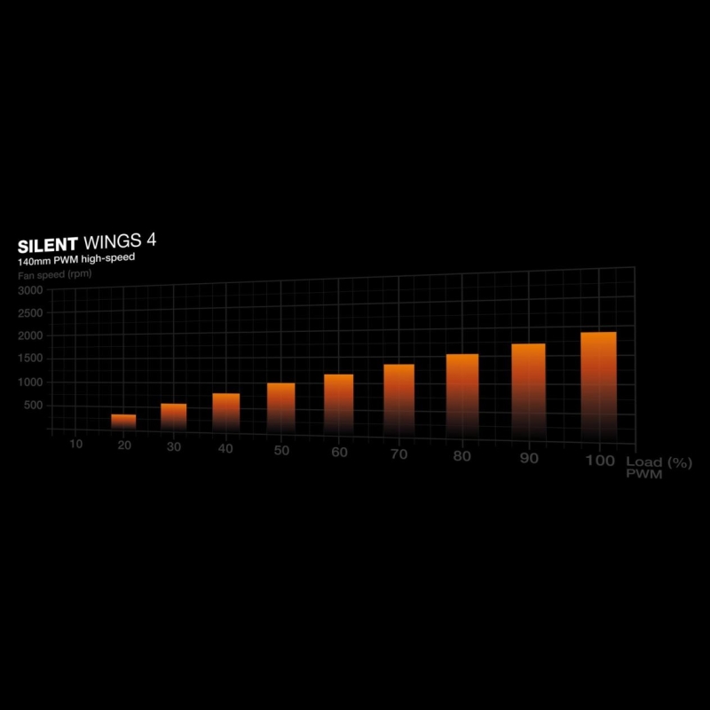 - 3 Silent Wings 4 140mm PWM high-speed fans with radiator corners for virtually inaudible operation