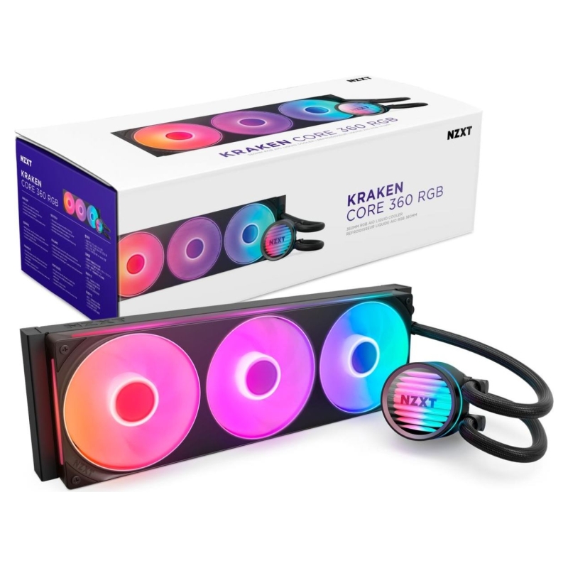 The NZXT Kraken Core AIO delivers powerful, quiet liquid cooling with a high-performance pump, PWM fans, and vibrant RGB lighting. Easy to install and compatible with the latest Intel and AMD sockets, it keeps your CPU cool, your system quiet, and your build looking clean.