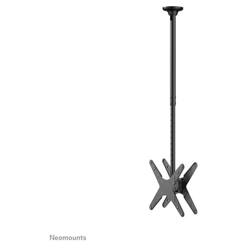 The Neomounts FPMA-C340DBLACK is a full motion ceiling mount for 2 flat screens up to 75". The unique tilt (10°), swivel (360°) and rotate technology (6°) allows the mount to change to the best angle for the optimal viewing position.