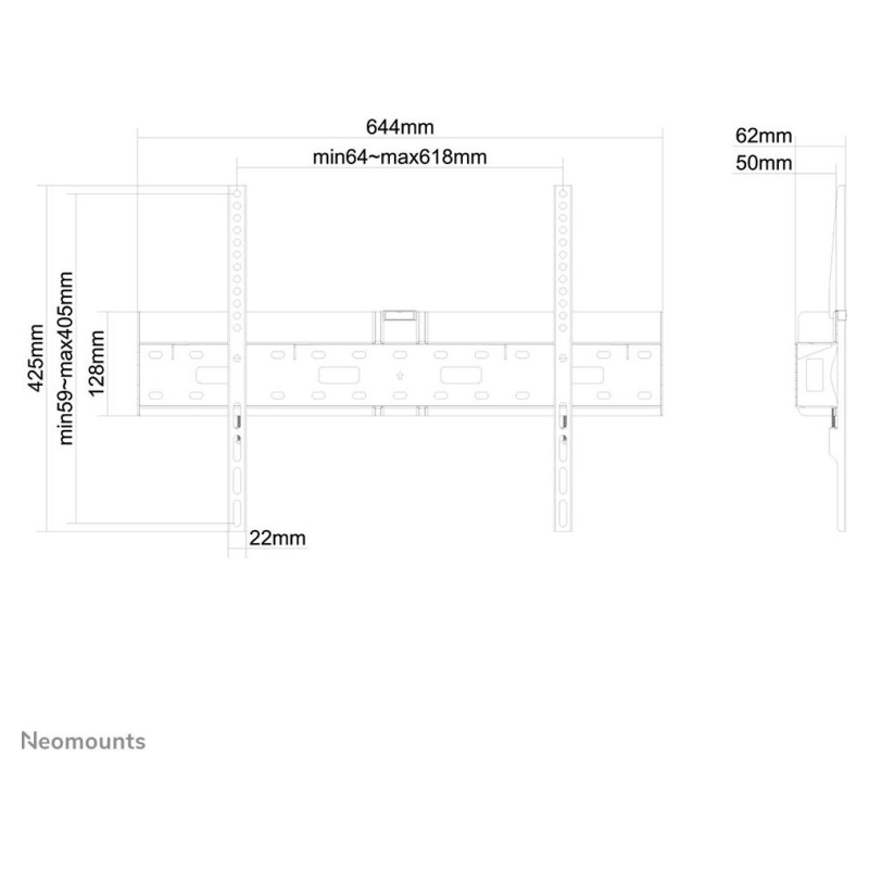 Neomounts model LFD-W1640MP is a fixed wall mount for flat screens up to 75". The depth of this mount is 6,2 centimetres and also offers the option to store a Mediaplayer or Mini PC.