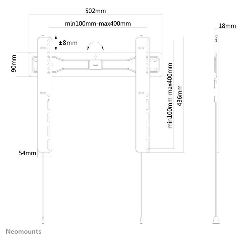 The Neomounts wall mount, model LED-W400BLACK is a fixed wall mount for flat screens up to 55". This mount is a great choice when you want the ultimate viewing flexibility with your flat screen. Depth of this mount is 1,8 centimetres.