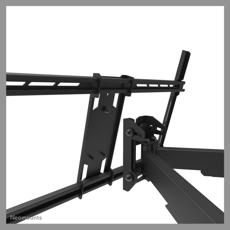 The Neomounts WL40S-950BL18 is a full motion heavy-duty wall mount for flat screens up to 110" with a maximum weight capacity of 125 kg. The versatile tilt (20°) and swivel (90°) technology allows you to create the optimum viewing angle. Level adjustment is available for the perfect installation.