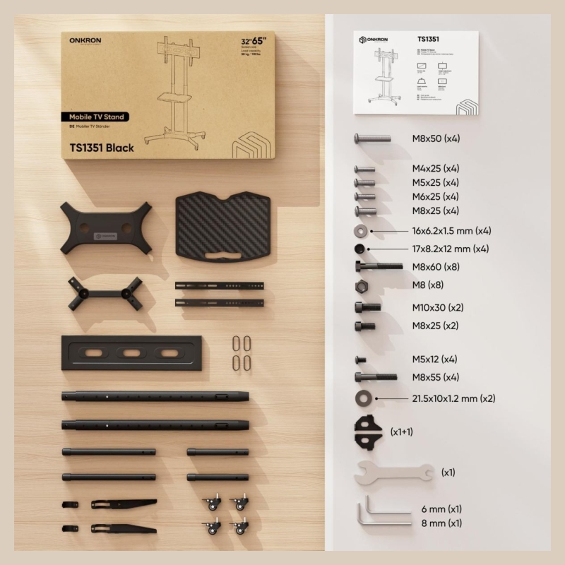 Onkron TV SET ACC MOBILE STAND/32-65"/BLACK TS1351-B ONKRON