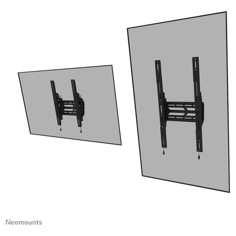 The Neomounts WL35S-950BL19 is a tiltable heavy-duty wall mount for flat screens up to 115" with a maximum weight capacity of 160 kg. The versatile tilt technology, with 3 lockable tilt presets (4°, 8° and 12°), allows you to create the optimum viewing angle. It is possible to install the screen in both portrait and landscape orientation. The mount features individual height adjustable brackets and level adjustment is available for the perfect installation.