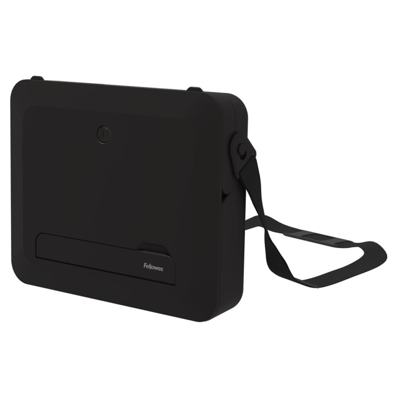 Elevate your work setup with Fellowes Breyta laptop stand carry case. Seamlessly combining a storage/carry case and a laptop riser, this innovative 2-in-1 design adapts to your on-the-go work needs. Experience ergonomic perfection with five adjustable height settings, tailoring your laptop's position for optimal viewing comfort and reducing strain during your workday. Its portable design simplifies setup, adjustment, and storage, catering to the ever-evolving demands of hybrid working. The built-in handle and optional carry strap ensure effortless transportation. Choose between black or white to match your workspace's modern design aesthetics. Enhance your workspace with the Breyta laptop stand carry case – where comfort, style, and sustainability come together seamlessly to elevate your productivity and well-being. This sustainable product is to last with a 5-year extended warranty, and access to the best customer service to help with any queries.