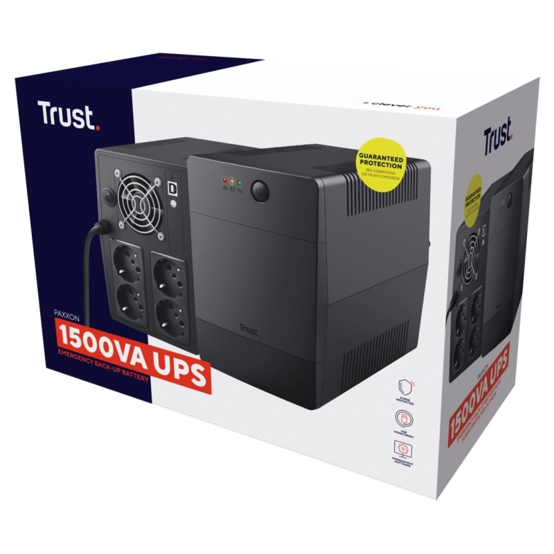 You can rest easy, knowing that the Trust Paxxon 1500VA is keeping an eye out for your devices. The reliable UPS is an ideal secondary power source to your electronics, keeping them running temporarily during power grid blackouts, and protecting them from power surge damage.