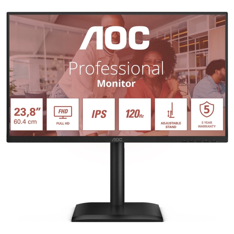 The 24E4U offers a 24" FHD display with a 120Hz refresh rate, delivering crisp, smooth visuals for an enhanced viewing experience. Its Height Adjustable Stand (HAS) provides ergonomic flexibility, while the hardware-based anti-blue light feature helps reduce eye strain during extended use. With Adaptive Sync technology for seamless performance and a 5-year warranty for lasting reliability, this monitor is a practical and dependable addition to any workspace.