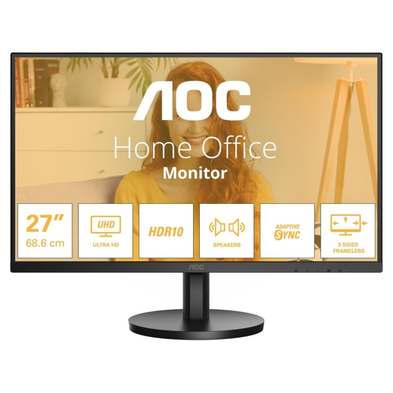 Boost your productivity to the fullest with the AOC U27B3A. This 27-inch UHD monitor boasts a smooth 60Hz refresh rate and a sleek three-sided frameless design, ensuring a comfortable viewing experience. Say goodbye to eye strain with its low blue light feature providing ample protection for your eyes. Plus, enjoy tear-free visuals thanks to Adaptive Sync technology, and feel yourself in stunningly clear graphics with HDR10 support. With the built-in 2-watt speaker you can have enhanced audio experience.