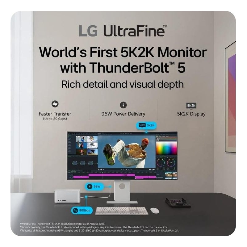 - Thunderbolt™ 5 powers fast, stable 5K2K production with 96W charging