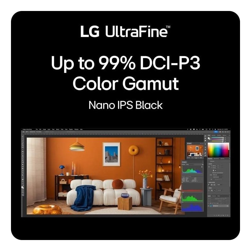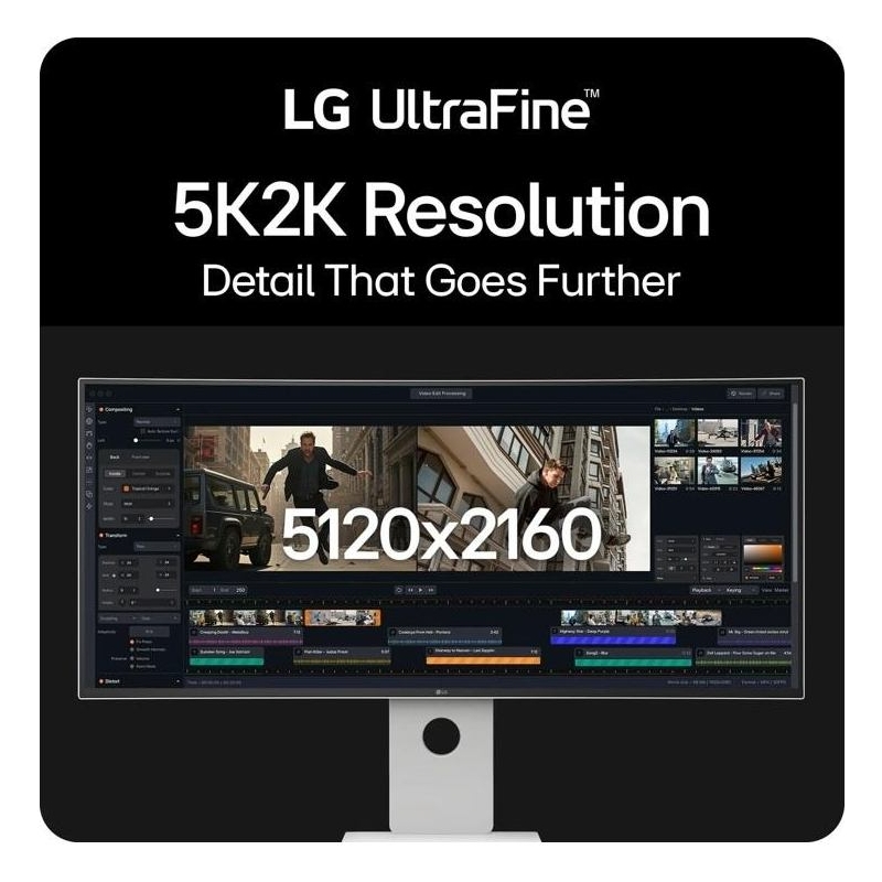 The 5K2K (5120x2160) Nano IPS Black display offers 33% more pixels than standard 4K UHD, delivering ultra-wide resolution, vivid color, and razor-sharp detail—creating a spacious, precise workspace ideal for video editing, graphic design, photography, and color-critical tasks.