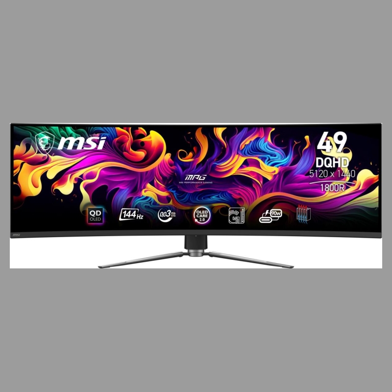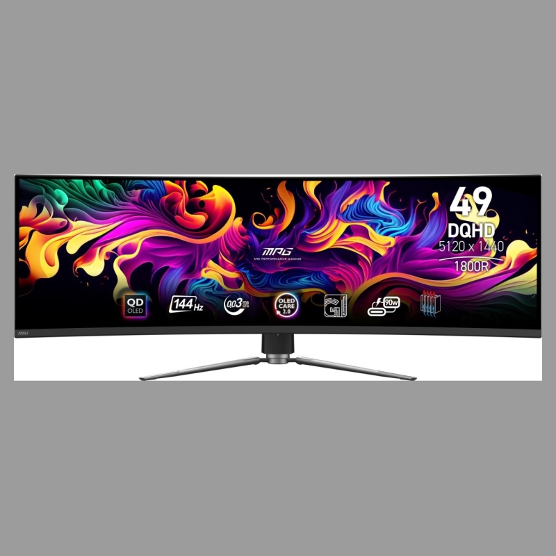 The MPG 491CQP QD-OLED features a 49-inch 1800R curved QD-OLED panel with DQHD (5120 x 1440) resolution and a speedy 144Hz refresh rate for exceptionally smooth gameplay. Experience unparalleled immersive gaming with the 49 inch ultra-wide screen.