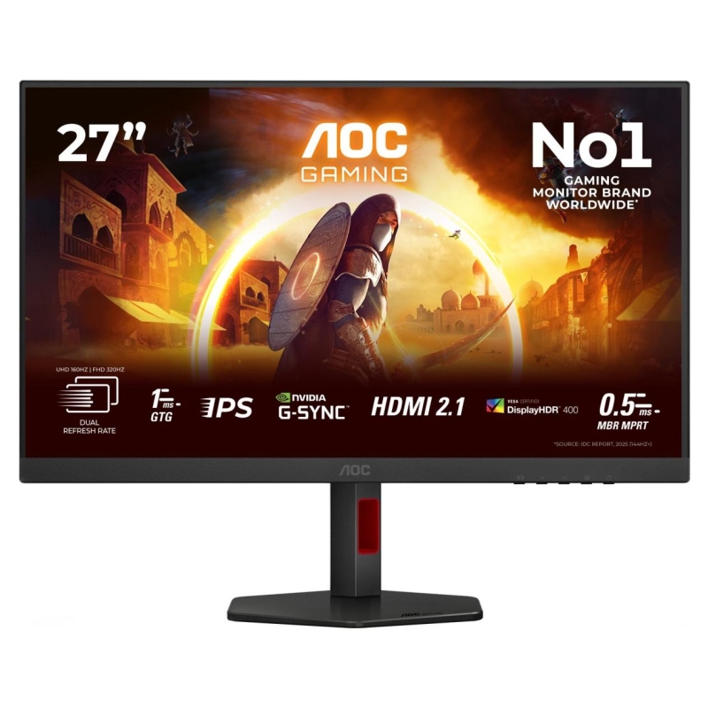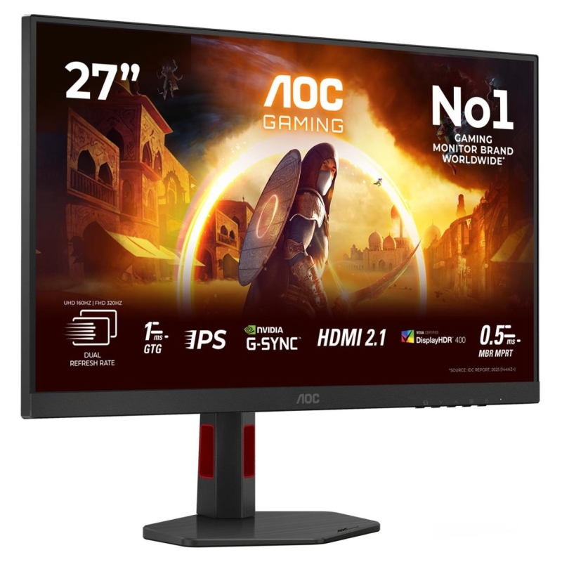 - AOC G4 U27G4R. Display diagonal: 68.6 cm (27"), Display resolution: 3840 x 2160 pixels, HD type: 4K Ultra HD, Display technology: LED, Response time: 1 ms, Native aspect ratio: 16:9, Viewing angle, horizontal: 178°, Viewing angle, vertical: 178°. Built-in USB hub, USB hub version: 3.2 Gen 1 (3.1 Gen 1). VESA mounting, Height adjustment. Product colour: Black, Red