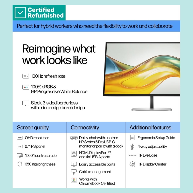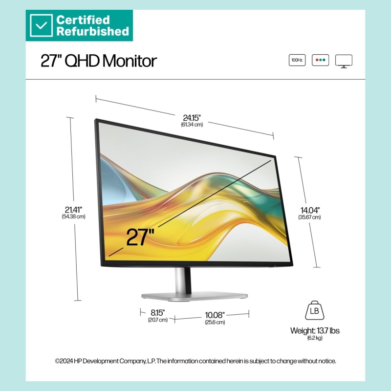 HP RENEW GOLD HP 527pq Series 5 Pro QHD Monitor - 27" 2560x1440 QHD 350-nit 100Hz AG, IPS, HDMI/DisplayPort, 4x USB-A, height ad