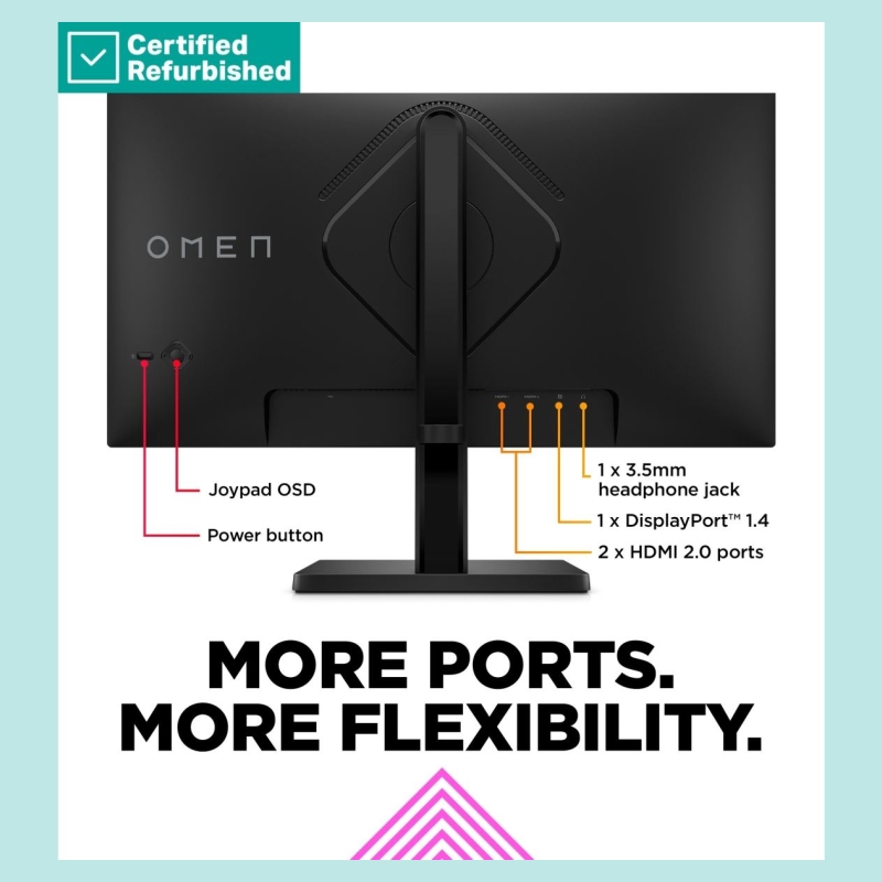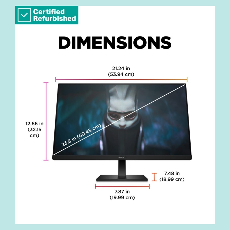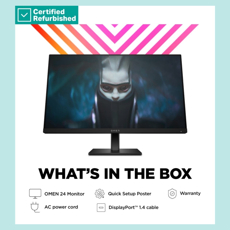 HP RENEW GOLD OMEN by HP 24 FHD Gaming Monitor - 23.8" 1920x1080 FHD 300-nit 165Hz AG, IPS, 2x HDMI/DisplayPort, height adjustab