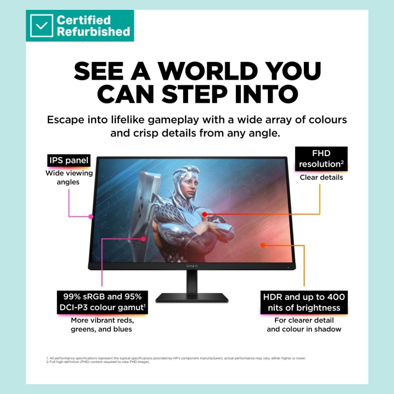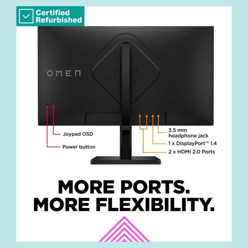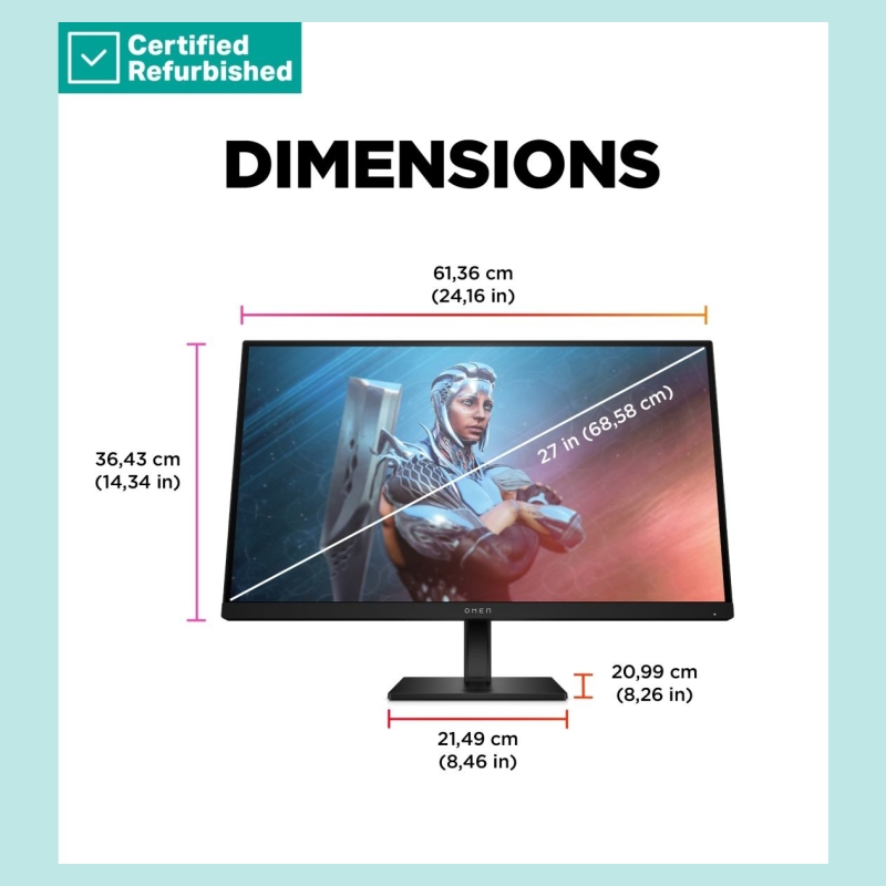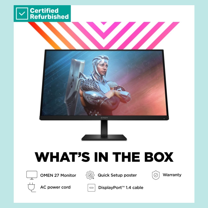 HP RENEW SILVER OMEN by HP 27 FHD Gaming Monitor - 27" 1920x1080 FHD 400-nit 165Hz AG, IPS HDR 400, 2x HDMI/DisplayPort, height