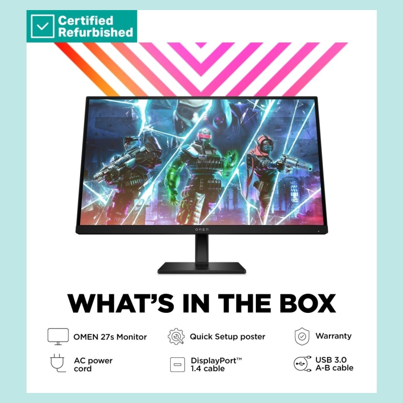 HP RENEW SILVER OMEN by HP 27s FHD Gaming Monitor - 27" 1920x1080 FHD 400-nit 240Hz AG, IPS, 2x HDMI/DisplayPort, 2x USB-A, spea