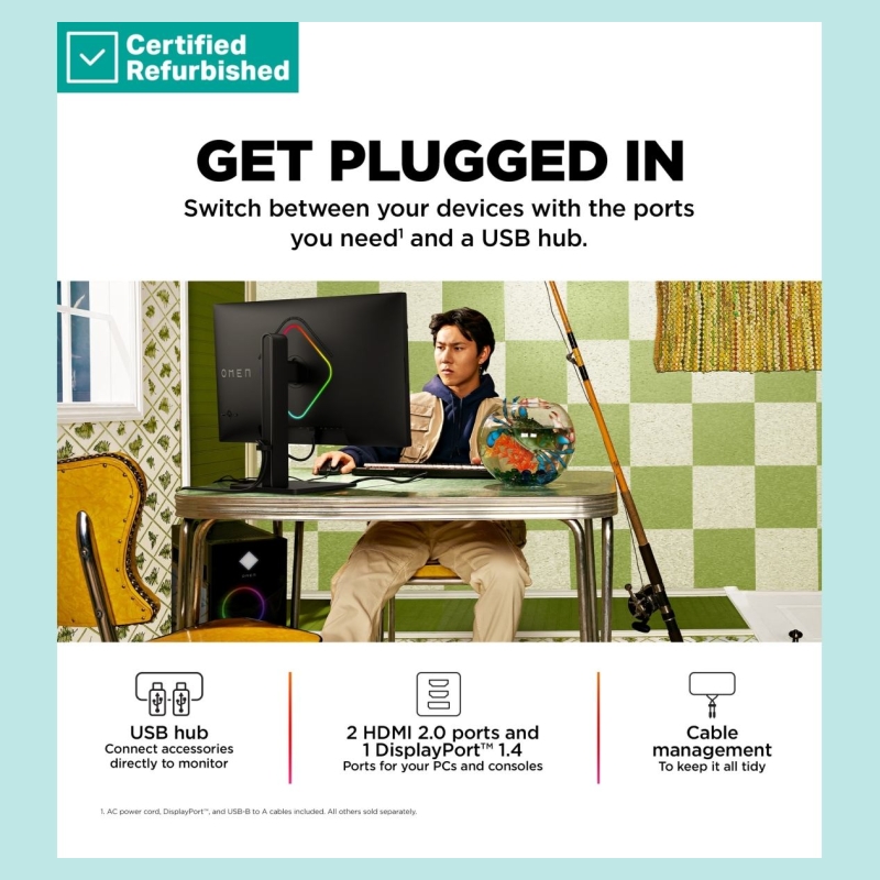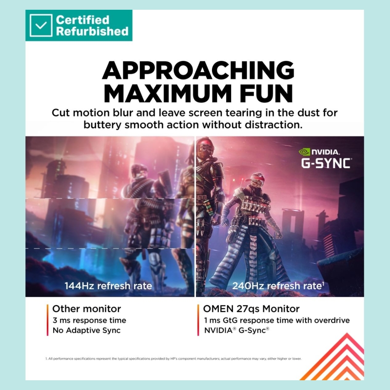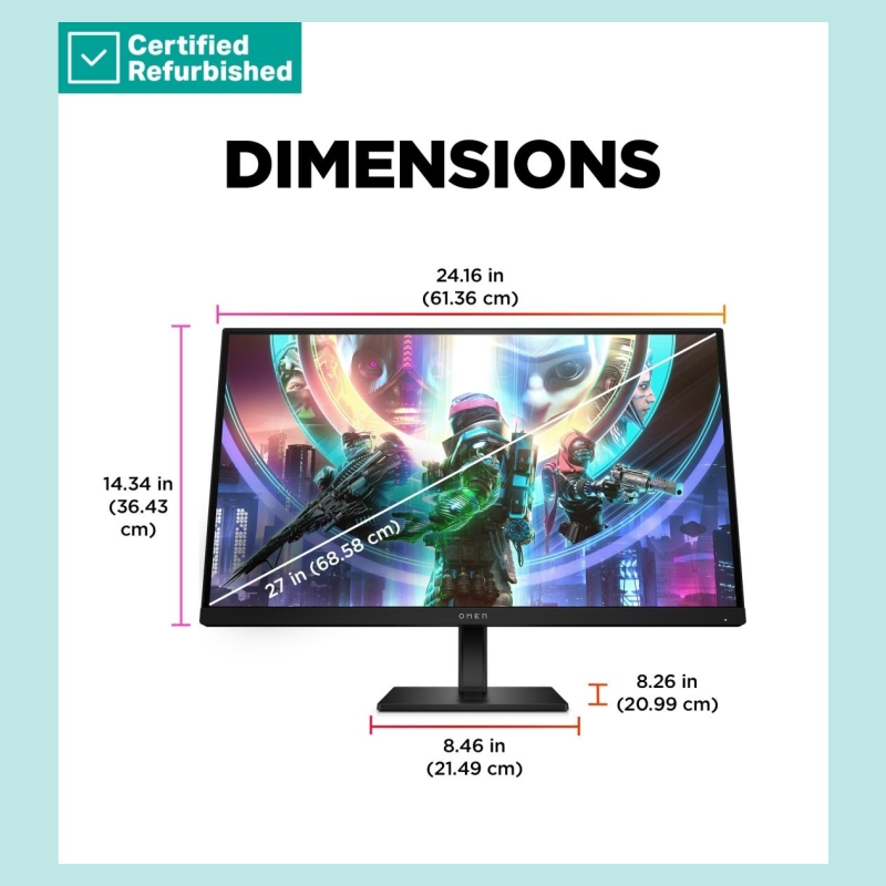 HP RENEW SILVER OMEN by HP 27qs QHD Gaming Monitor - 27" 2560x1440 QHD 400-nit 240Hz AG, IPS, 2x HDMI/DisplayPort, 2x USB-A, spe