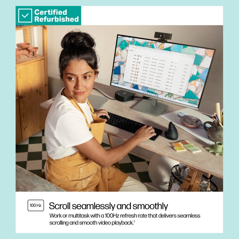 • See everything in more detail with 99% sRGB, 1500:1 contrast ratio, and 300 nits.[1] And enjoy seamless video with 100 Hz refresh rate.