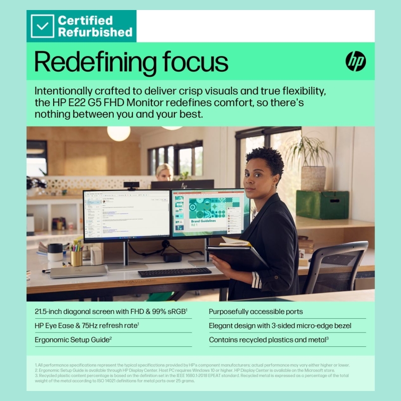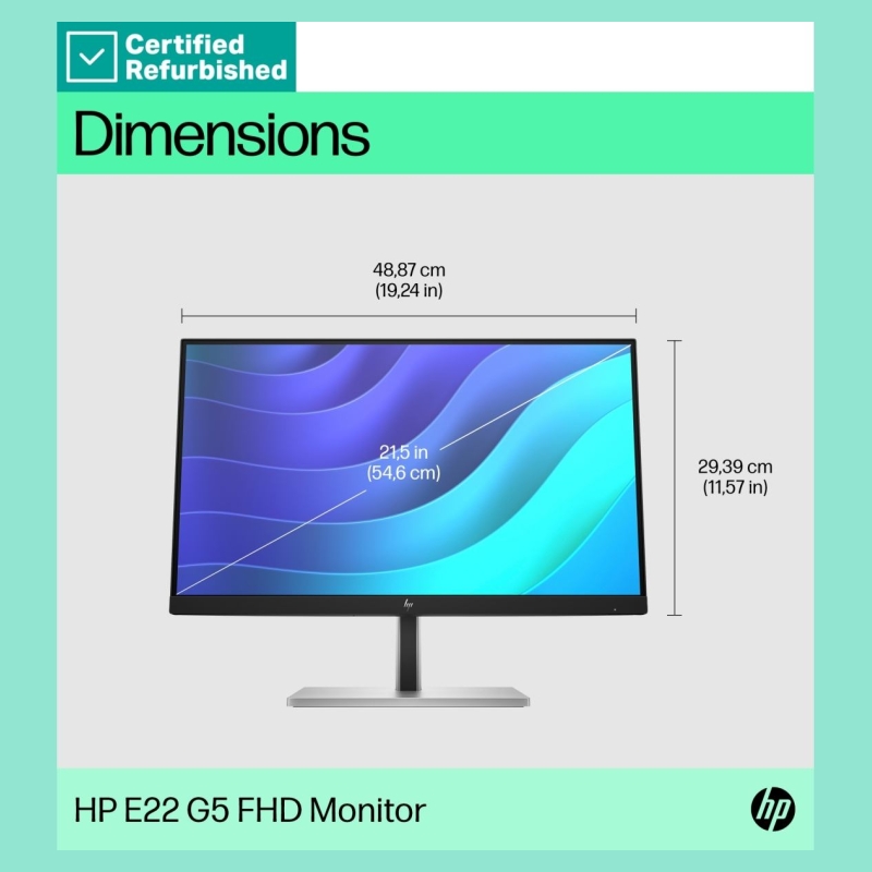 HP RENEW SILVER HP E22 G5 FHD Monitor - 21.5" 1920x1080 FHD 250-nit 75Hz AG, IPS, HDMI/DisplayPort, 4x USB-A, height adjustable/