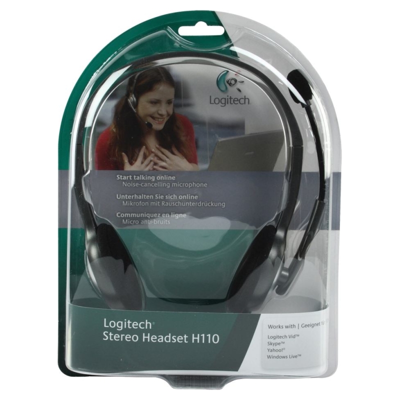 Start talking with the Logitech Stereo Headset H110. It’s perfect for making Internet calls, listening to music, watching movies and playing games in full stereo sound. A noise-cancelling microphone reduces annoying background noise, which helps keep your conversations clear. You can wear the flexible microphone on either your left or right side, and rotate it up and out of the way when you’re done chatting. An adjustable headband gives you just the right fit. And it’s easy to connect to your PC with 3.5 mm plugs that work with virtually any sound card.