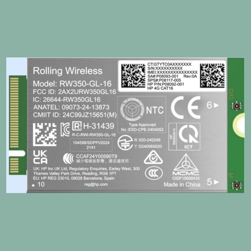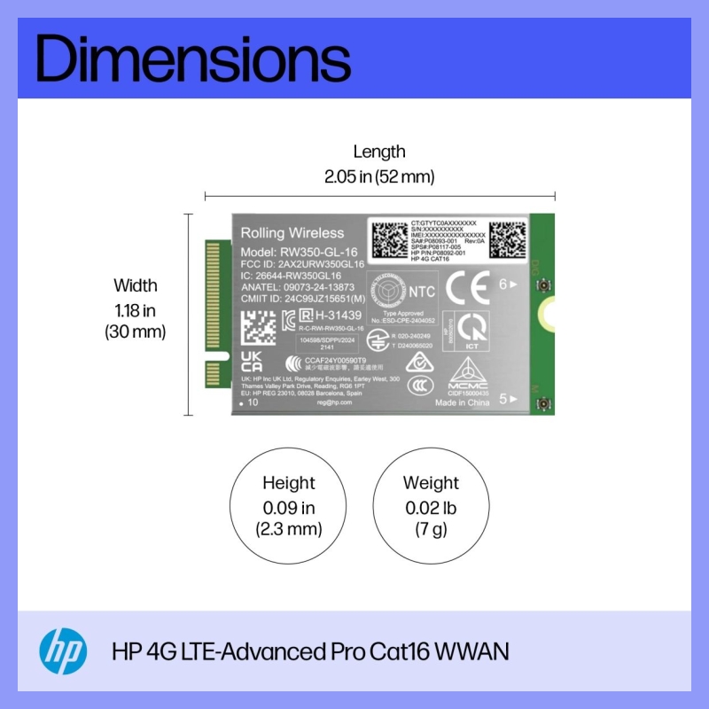 HP 4G LTE Modem m.2 WWAN Cat 16 Mobile Broadband Cellular (compatible with WWAN-ready ProBook EliteBook 4 6 - G1i G1a - 13 14 16)