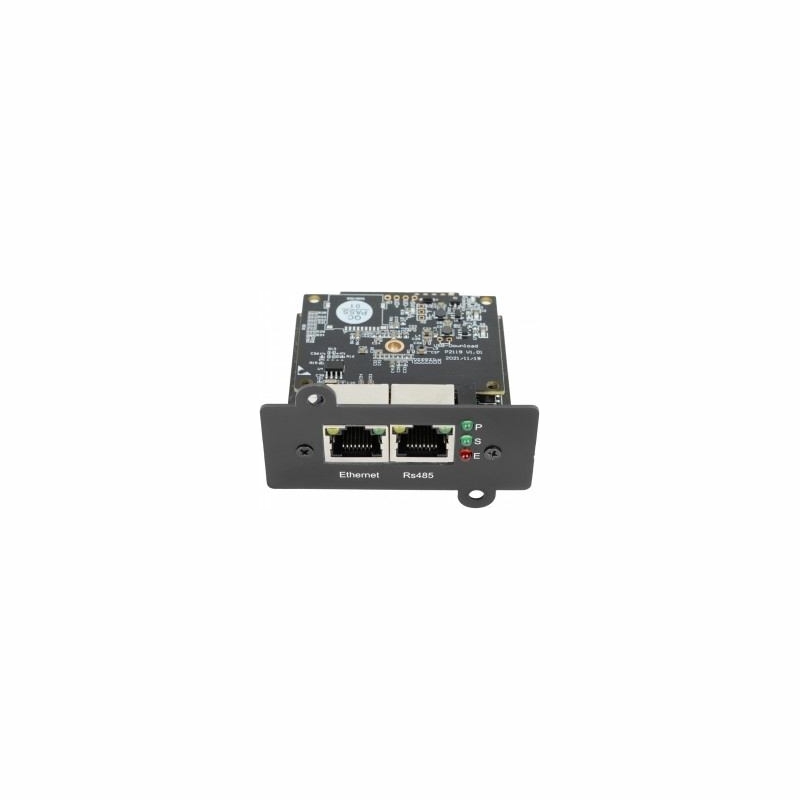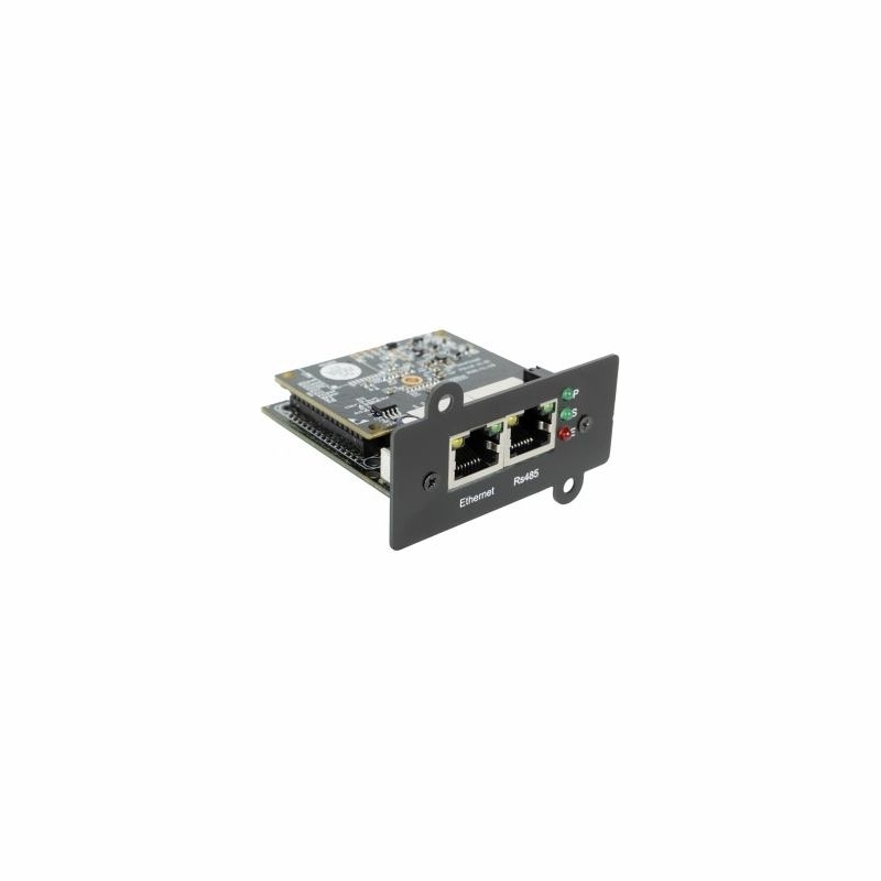 SNMPv1, SNMPv2c, SNMPv3 basic Modbus 485 Slave - provides UPS data to Modbus devices in Poll mode, e.g., PLC controllers; only one mode can operate at a time. Modbus TCP/IP Support for most RFC1628 requirements Extended resolution for delivering values in RFC1628 Additional functionalities such as reading sensor data via PPC Ability to define alarm thresholds (for both UPS and sensors) SMTP with SSL, NTP, DNS Configurable activation of SMTP, SNMP TRAP, and remote code execution (SSH, Telnet) depending on event or scenario Wake On LAN Configurable service ports Simple UPS control commands Task scheduler / automated schedules