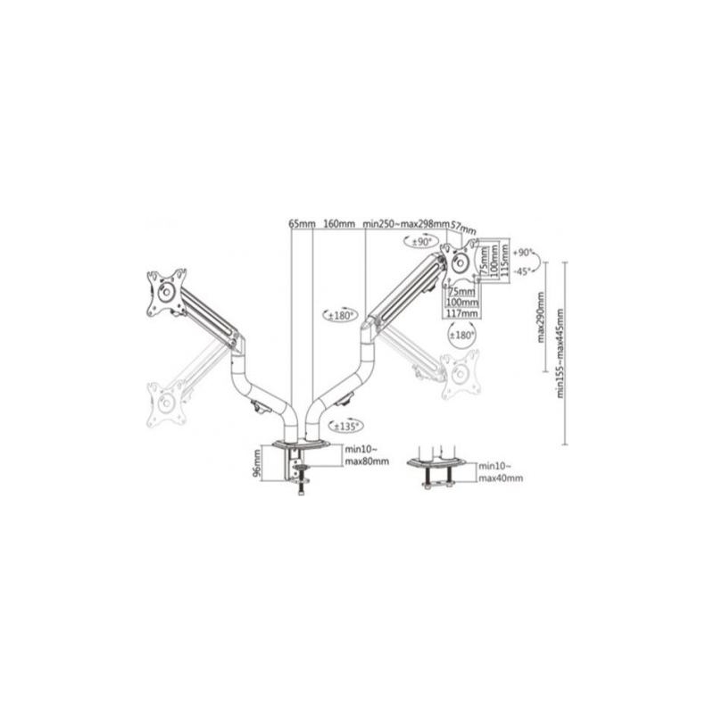 Arms rotate, extend and retract, tilt to change reading angles, and allow to rotate displays from landscape-to-portrait mode, etc
