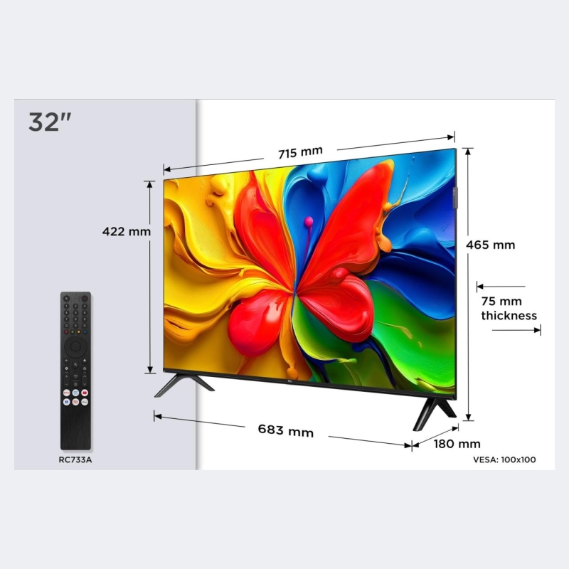TCL TV Set|TCL|32 "|HD|1366 x 768 pixels|Flat|16:9|QLED|32V4C