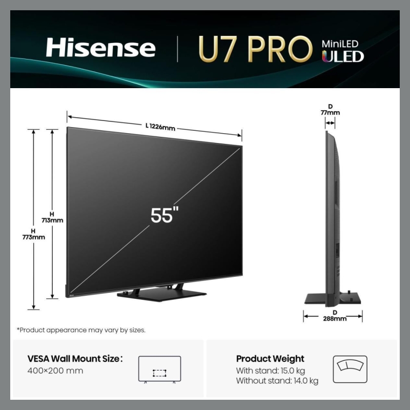 Hisense TV Set|HISENSE|55 "|4K Ultra HD|3840 x 2160 pixels|Flat|16:9|ULED|55U7QPRO