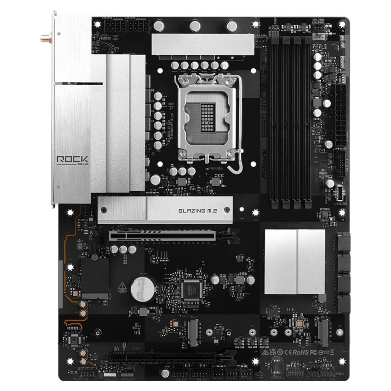 CPU: 1 x PCIe 5.0 x16 slot (PCIE1), supports x16 mode Chipset: 1 x PCIe 4.0 x16 slot (PCIE2), supports x4 mode 1 x M.2 socket (Key E), supports type 2230 WiFi/BT PCIe module and Intel CNVio/CNVio2 (integrated WiFi/BT) Storage CPU: 1 x Blazing M.2 socket (