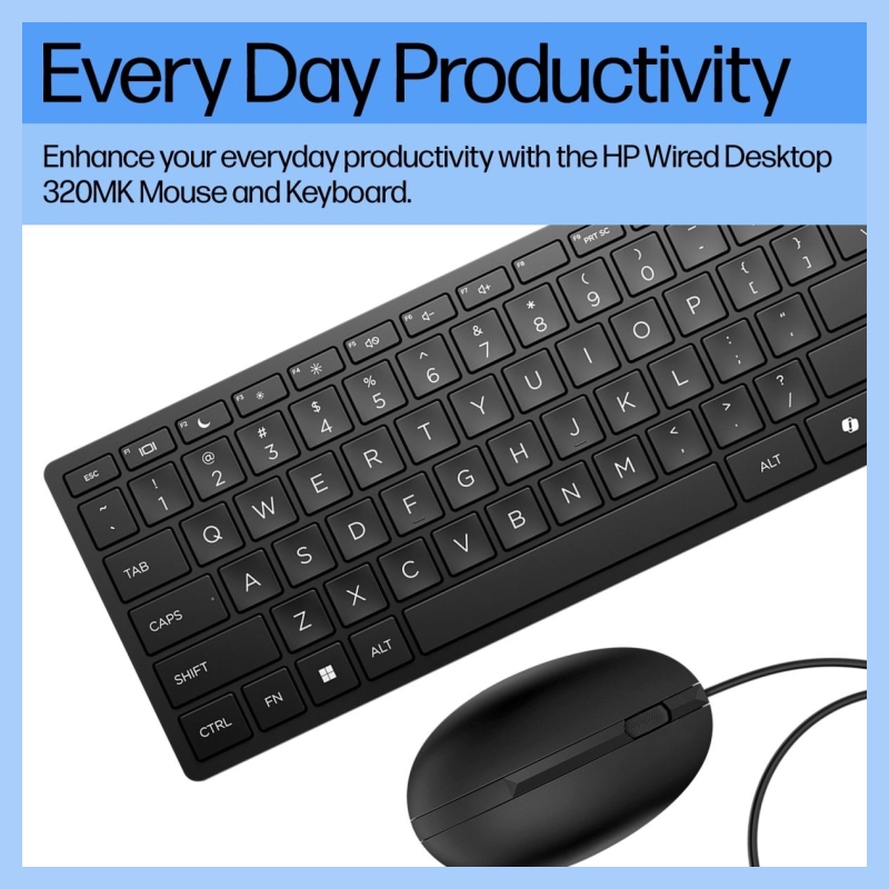 HP 320MK USB Wired Mouse Keyboard Combo, spill resistant – Black - US ENG / 9SR36UT#ABB