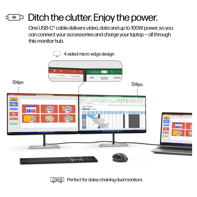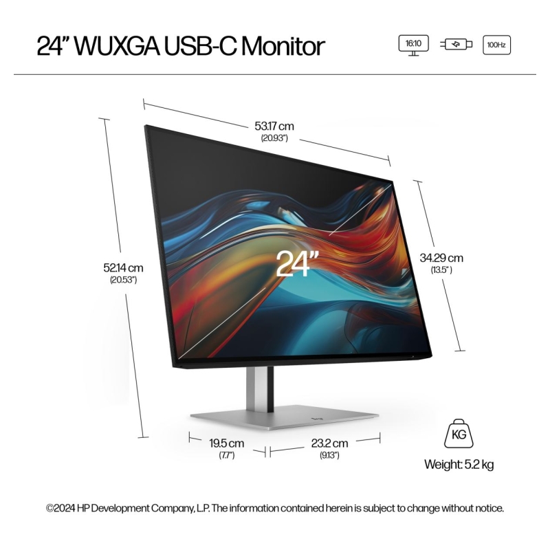 HP 724pu Series 7 Pro WUXGA Charging Monitor - 24" 1920x1200 WUXGA 350-nit 100Hz AG, IPS, USB-C(100W)/HDMI/DisplayPort Daisy-Cha