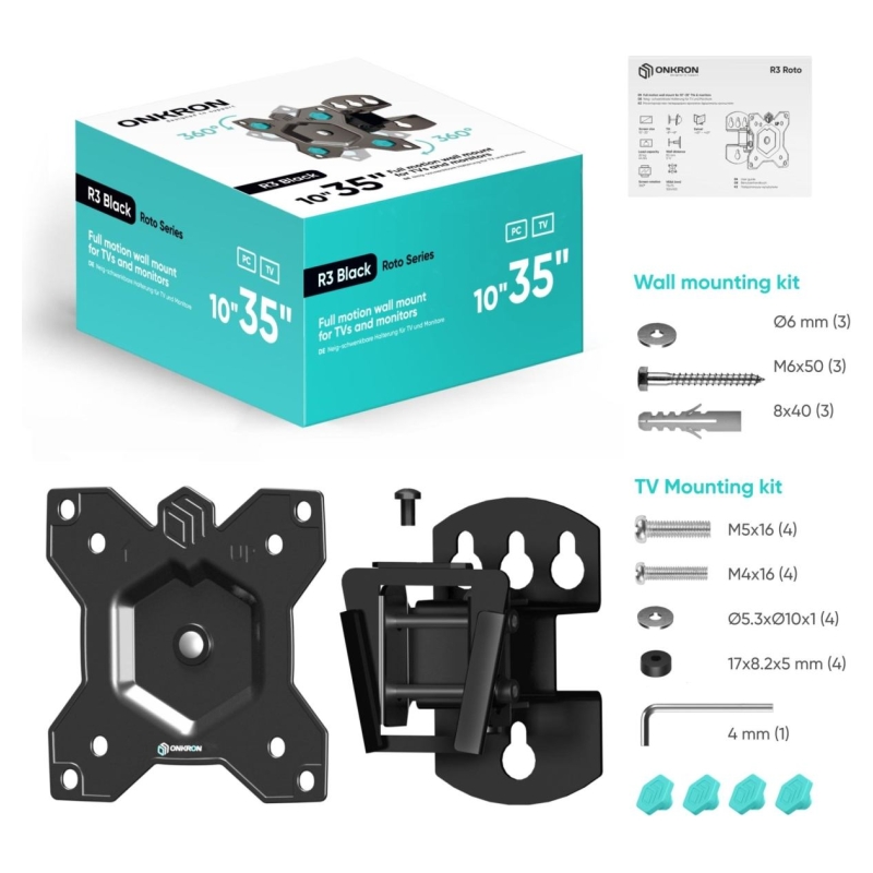 Onkron TV SET ACC WALL MOUNT /10-35"/BLACK R3-B ONKRON