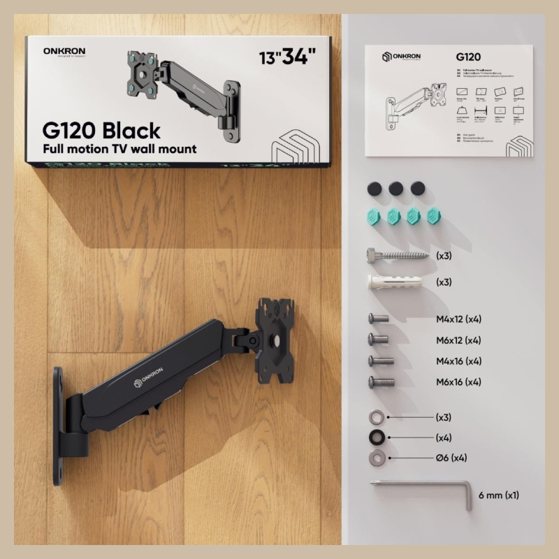 Onkron TV SET ACC WALL MOUNT /13-34"/BLACK G120-B ONKRON