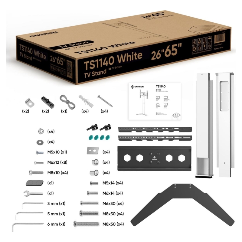 Onkron TV SET ACC FLOOR STAND /26-65"/WHITE TS1140-W ONKRON