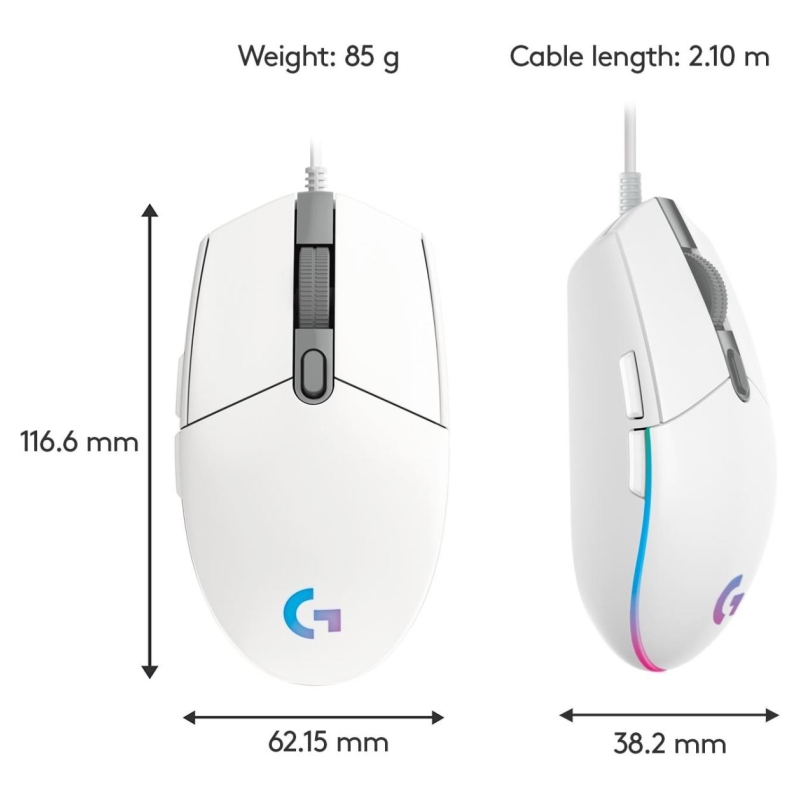 Logitech G203 LIGHTSYNC Corded Gaming Mouse - WHITE - USB