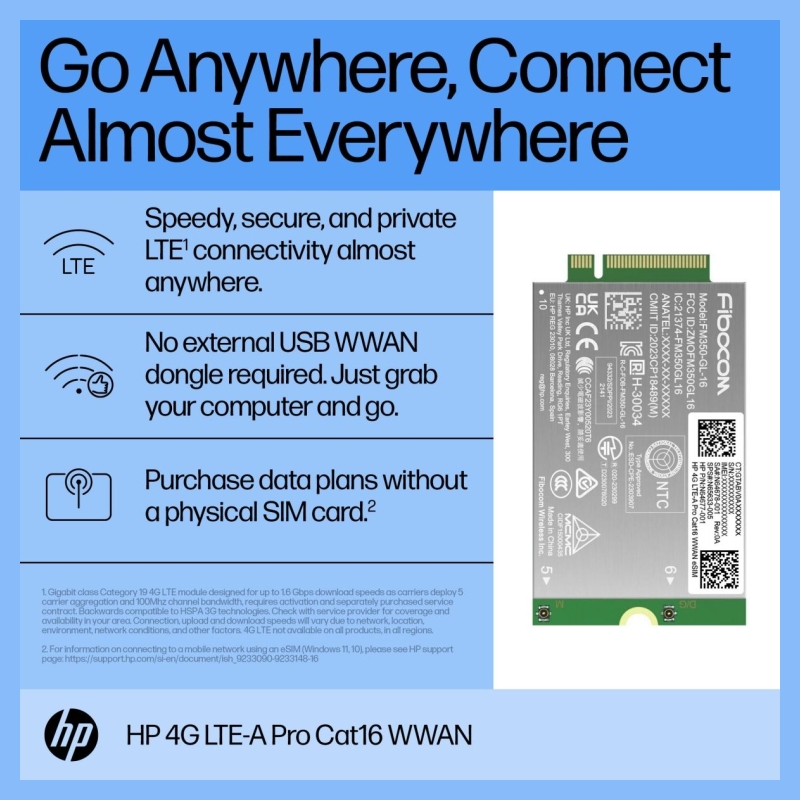 HP 4G LTE Modem m.2 WWAN Cat 16 L860-GL-16 Mobile Broadband Cellular (compatible with WWAN-ready EliteBook 630 640 645 660 665 8