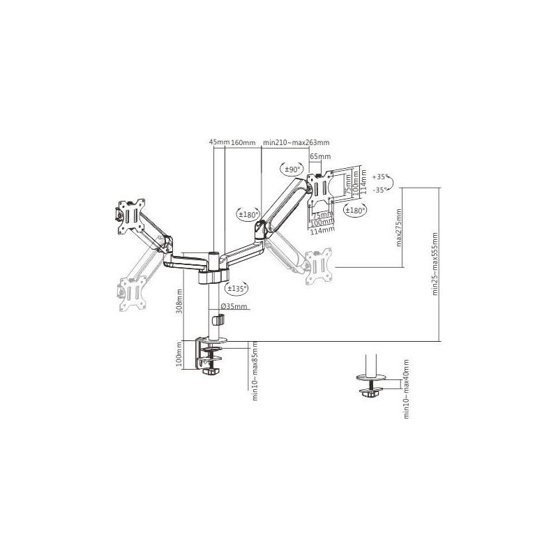 Gembird Adjustable desk 2-display mount