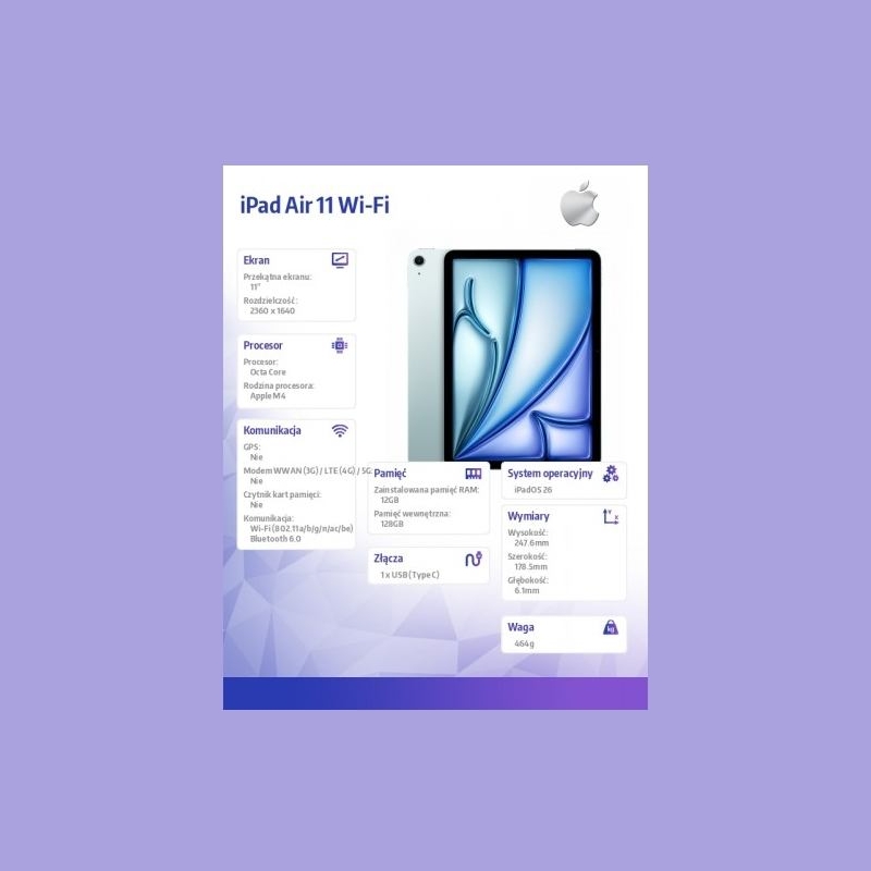 Īss ieskats Jauns APPLE Apple IPAD AIR 11 WIFI 128GB STL 834,03 € Pievienot grozam wishlist compare Availability: 6 In Stock